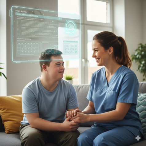 In de zorg voor mensen met een verstandelijke beperking vormt het groeiende personeelstekort een aanzienlijke uitdaging. Hierdoor ervaren zorgprofessionals een verhoogde werkdruk en is er minder tijd voor persoonlijke aandacht voor cliënten. Dit project onderzoekt de inzet van kunstmatige intelligentie (AI), specifiek Large Language Modellen (LLMs), om administratieve lasten te verlichten en veranderende zorgbehoeften tijdig te signaleren.